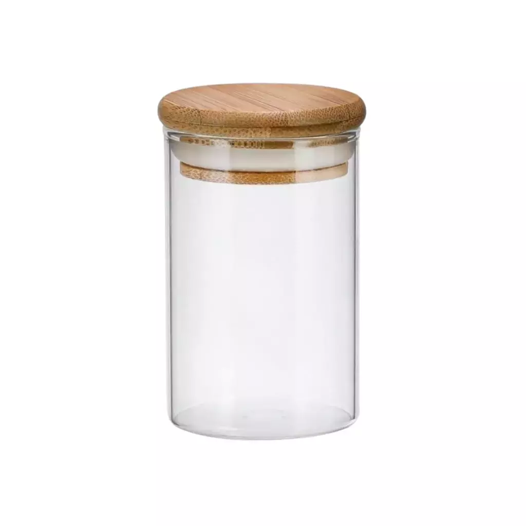 Organize sua cozinha com estilo e praticidade usando o Pote de Vidro Hermético com Tampa de Bambu, disponível na Wolf Store.